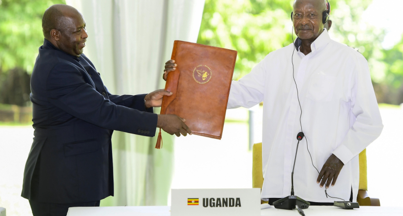 During the 12th high-level Regional Oversight Mechanism summit held at State House Entebbe, His Excellency Évariste Ndayishimiye, the President of the Republic of Burundi, handed over the instruments of power to President Museveni to steer the peace mechanism for the next two years.