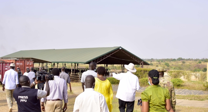 The President also visited Mr. James Ochan, an ordinary farmer in Paicho along Gulu-Kitgum road and Gulu Country Agro-processing farm which also has a training facility for smallholder farmers. H.E Museveni also toured around the farm and got oriented by the owner Mr. Kidega who says he earns 300 million shillings from his Friesian cows.