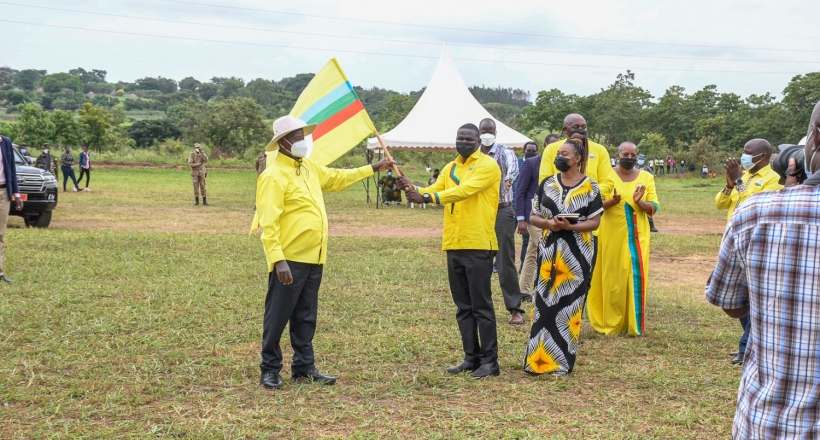 “I take this singular honour to hand over to you the NRM party flag to go and win,” he said.